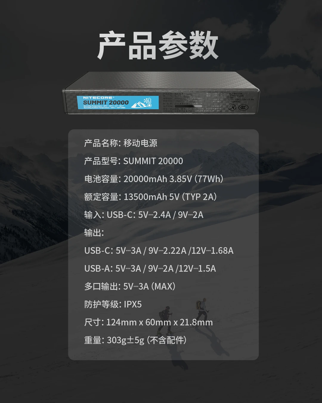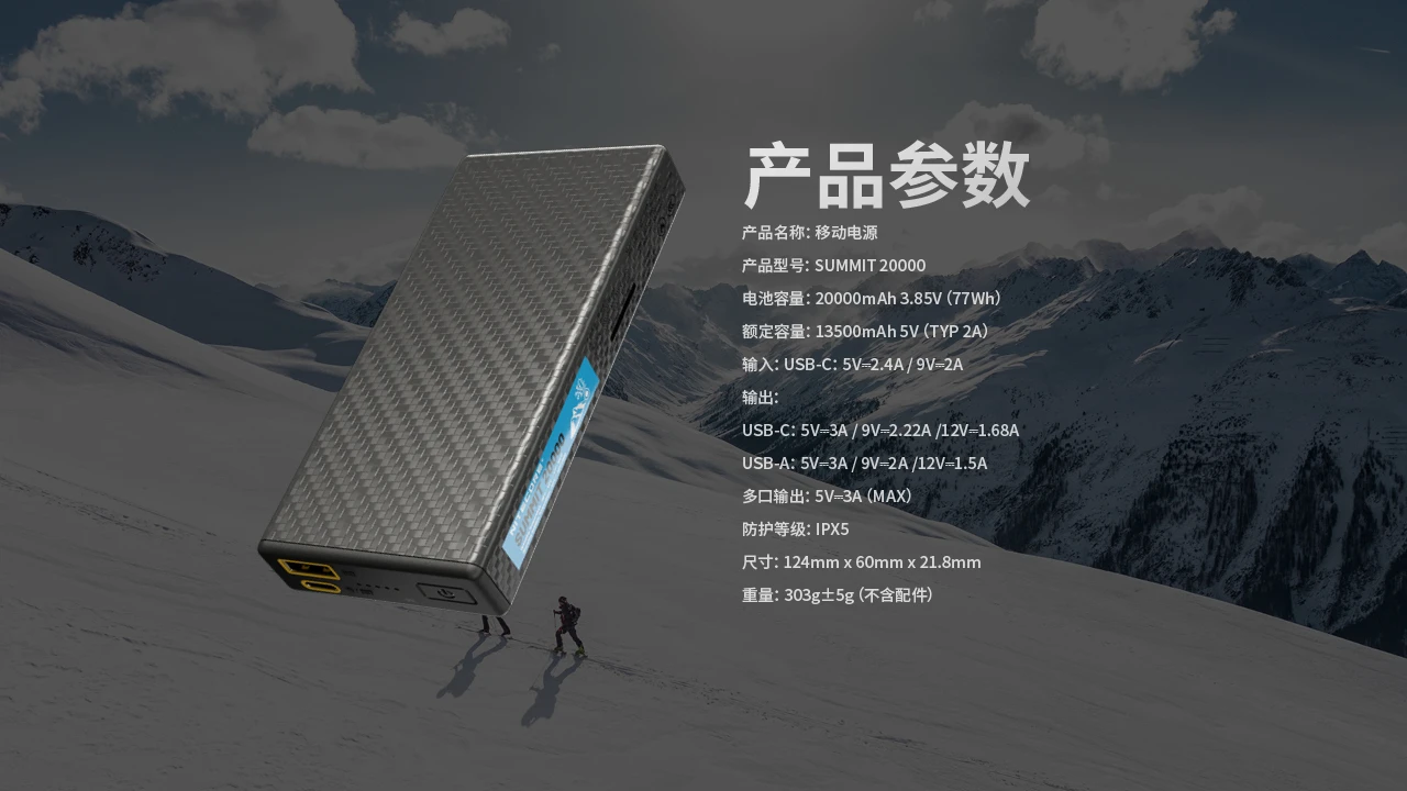 输出:USB-C:5V⎓3A / 9V⎓2.22A /12V⎓1.68A