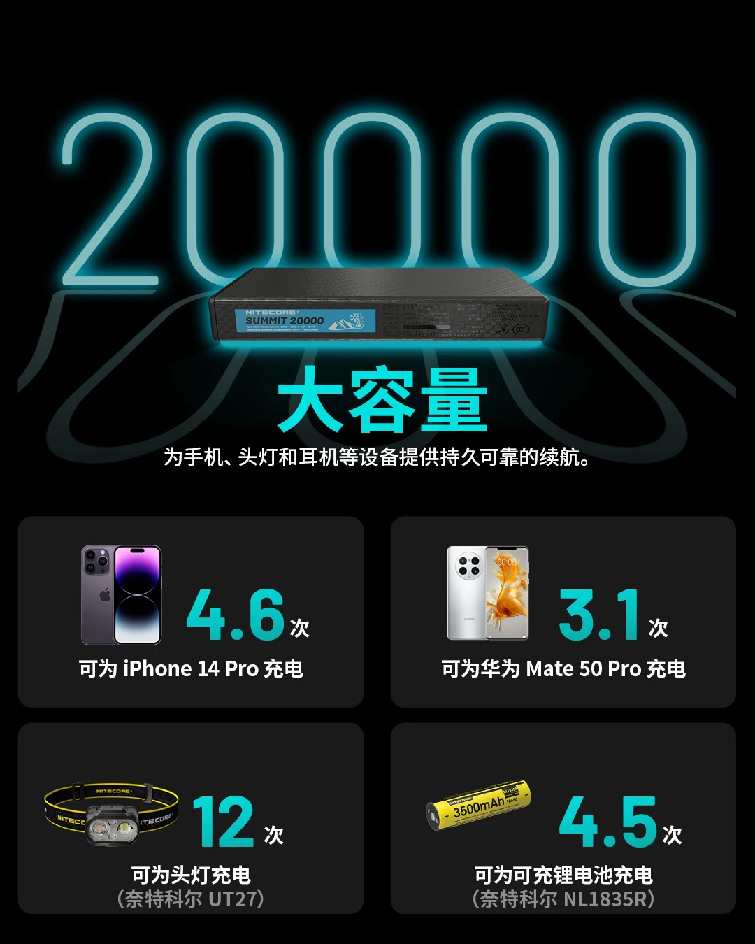 电池容量:20000mAh 3.85V(77Wh)