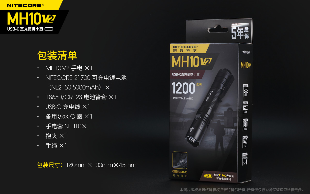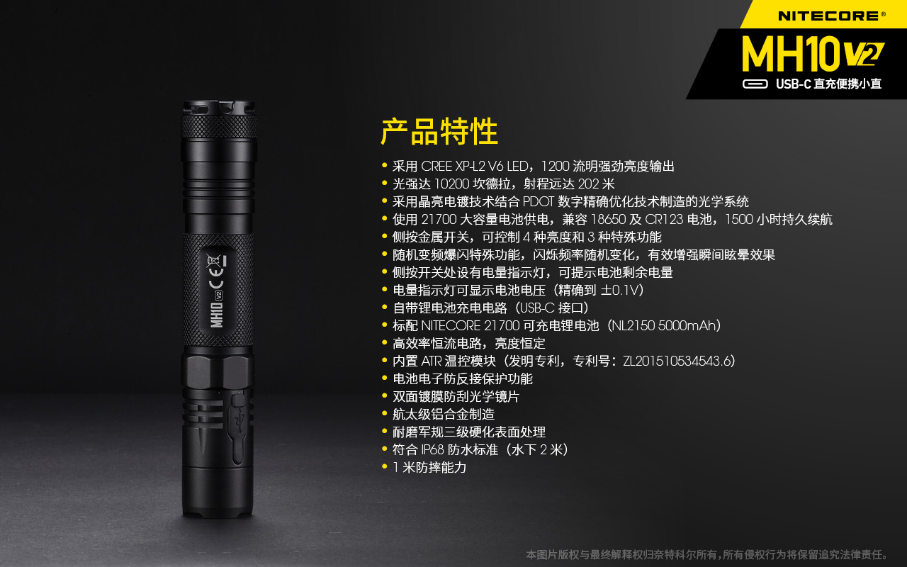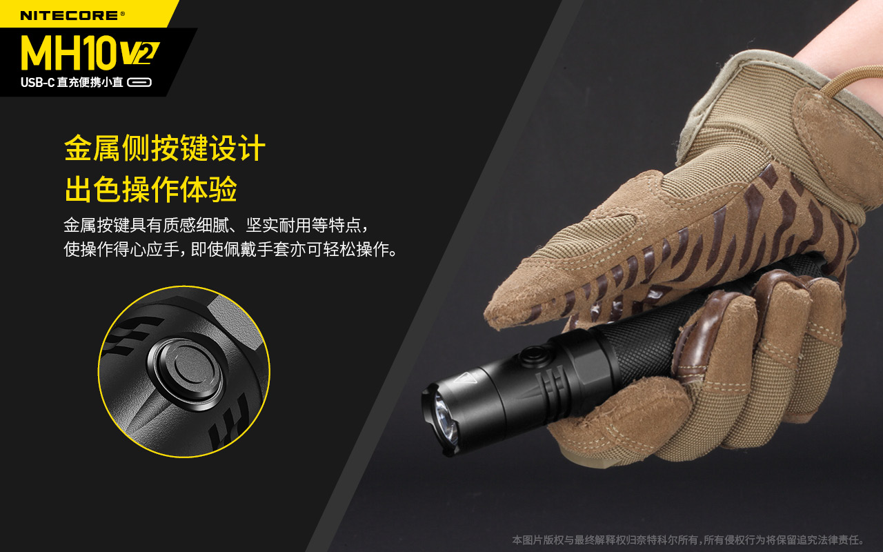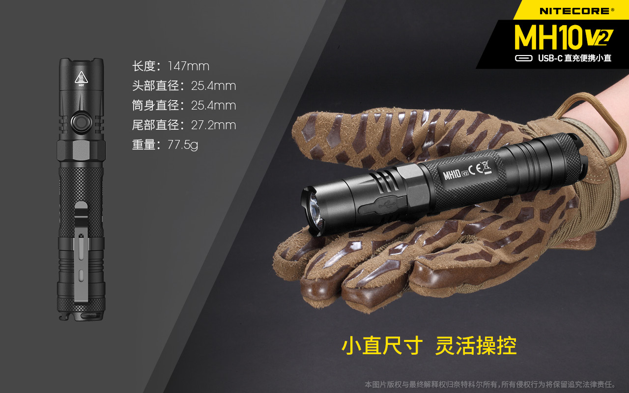 奈特科尔MH10 V2体型比较纤细,做工精良,是颜值爆表的佳品。重量轻,续航时间长,非常适合户外携带。