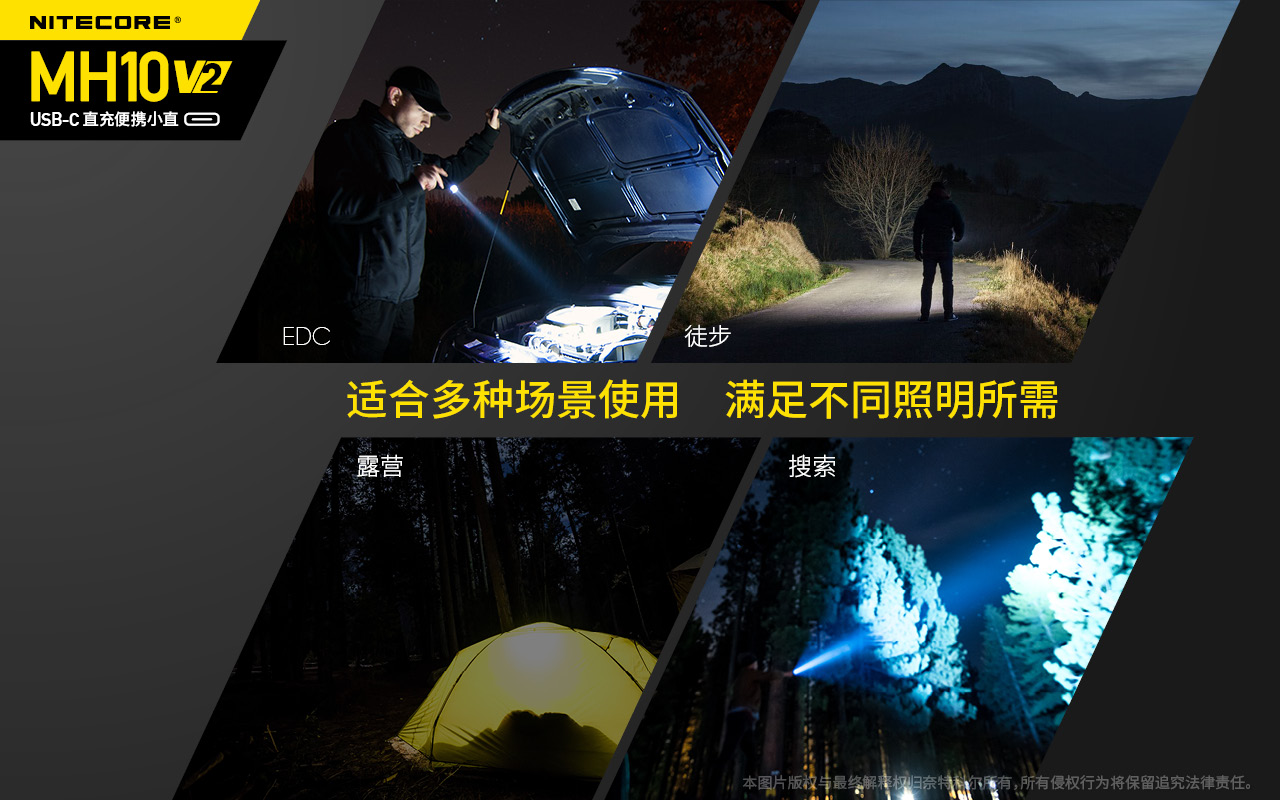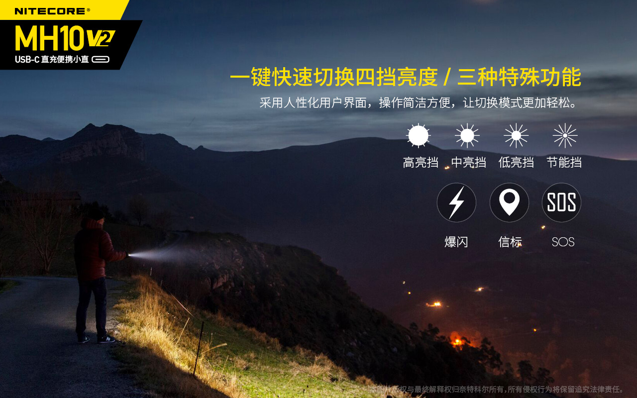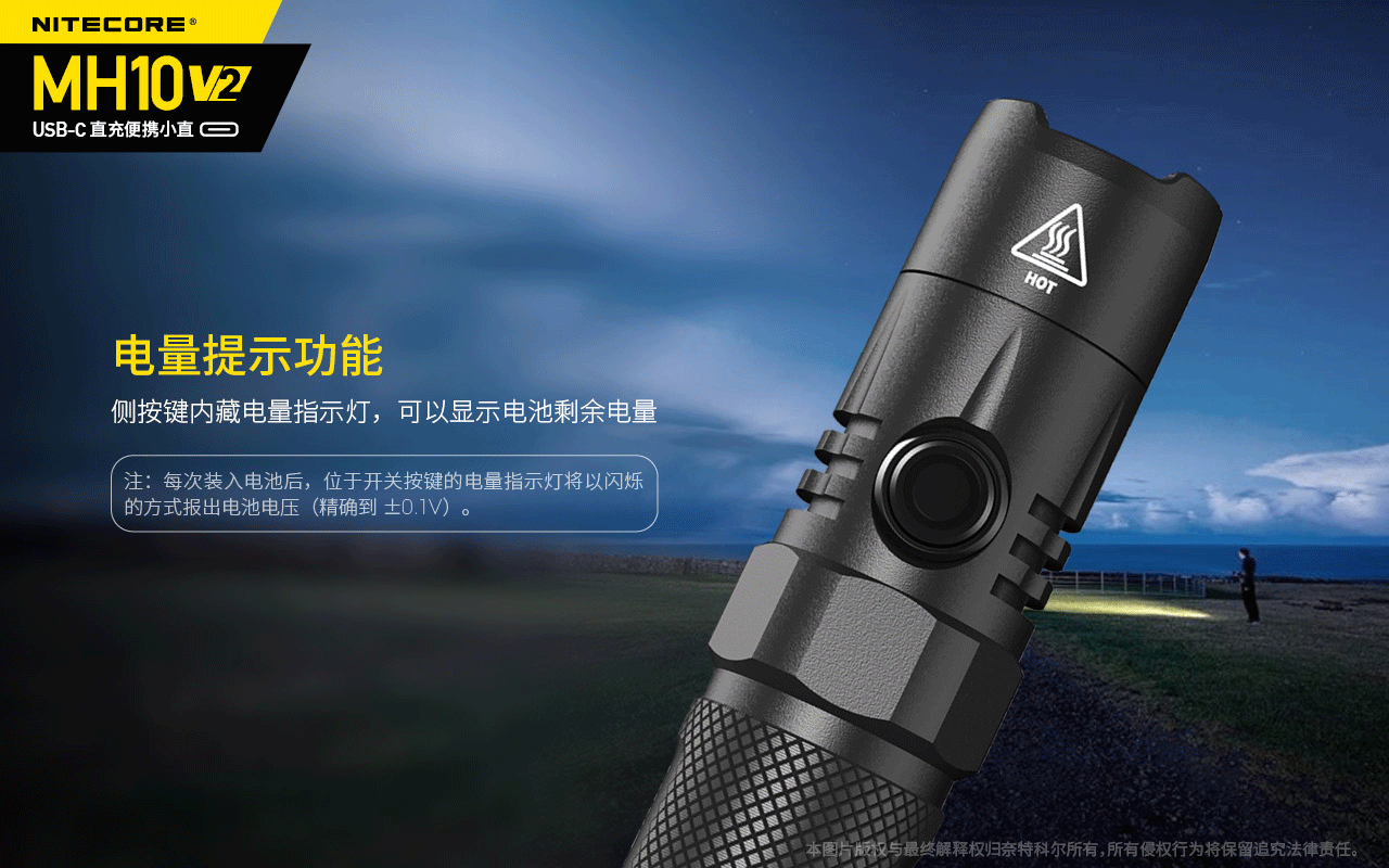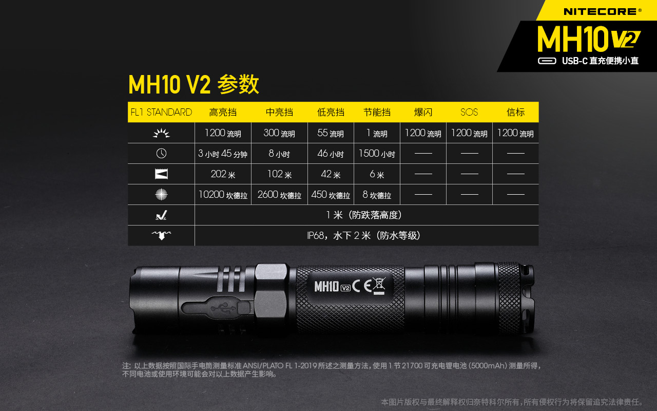 奈特科尔MH10 V2体型比较纤细,做工精良,是颜值爆表的佳品。重量轻,续航时间长,非常适合户外携带。