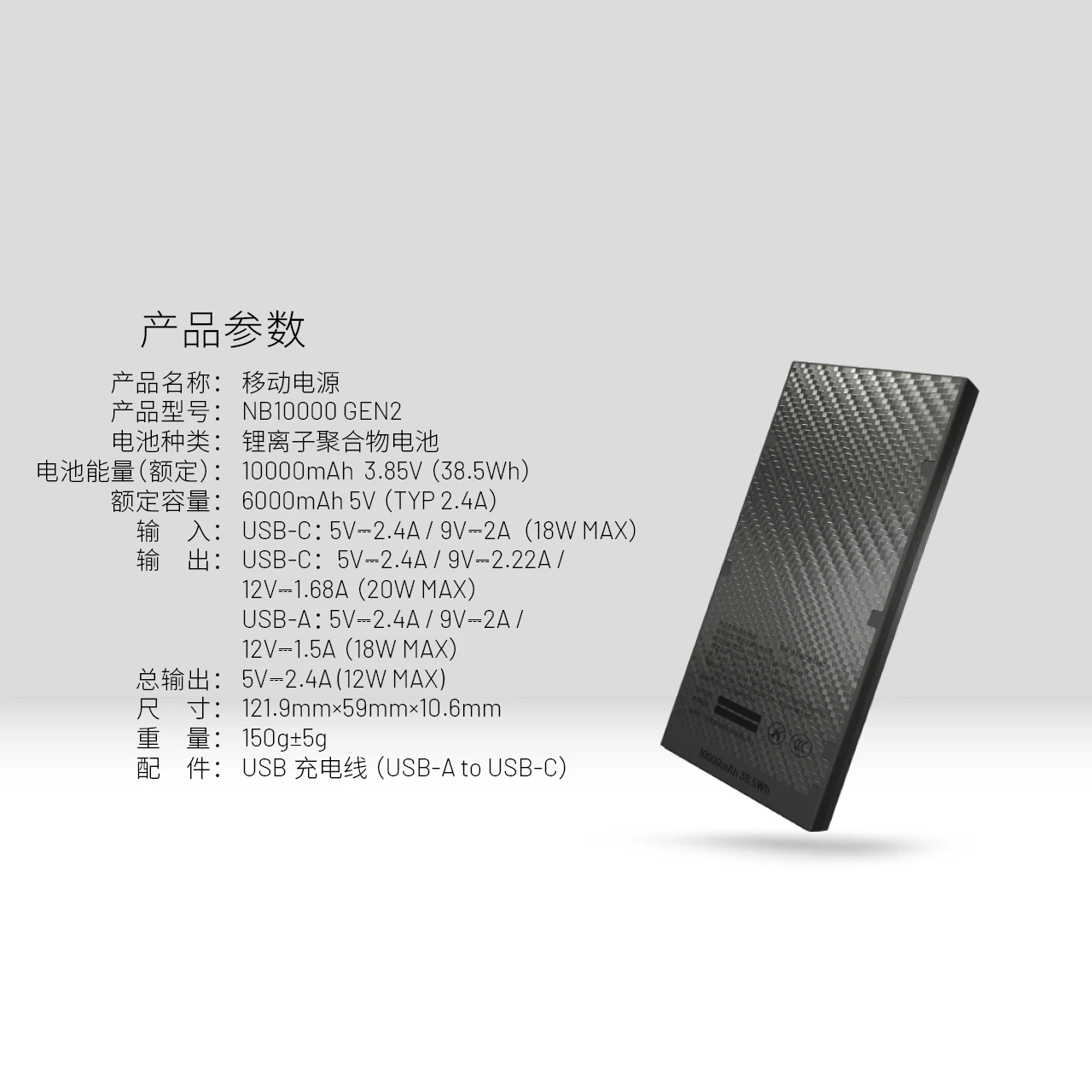 电池能量(额定):10000mAh 3.85V(38.5Wh)