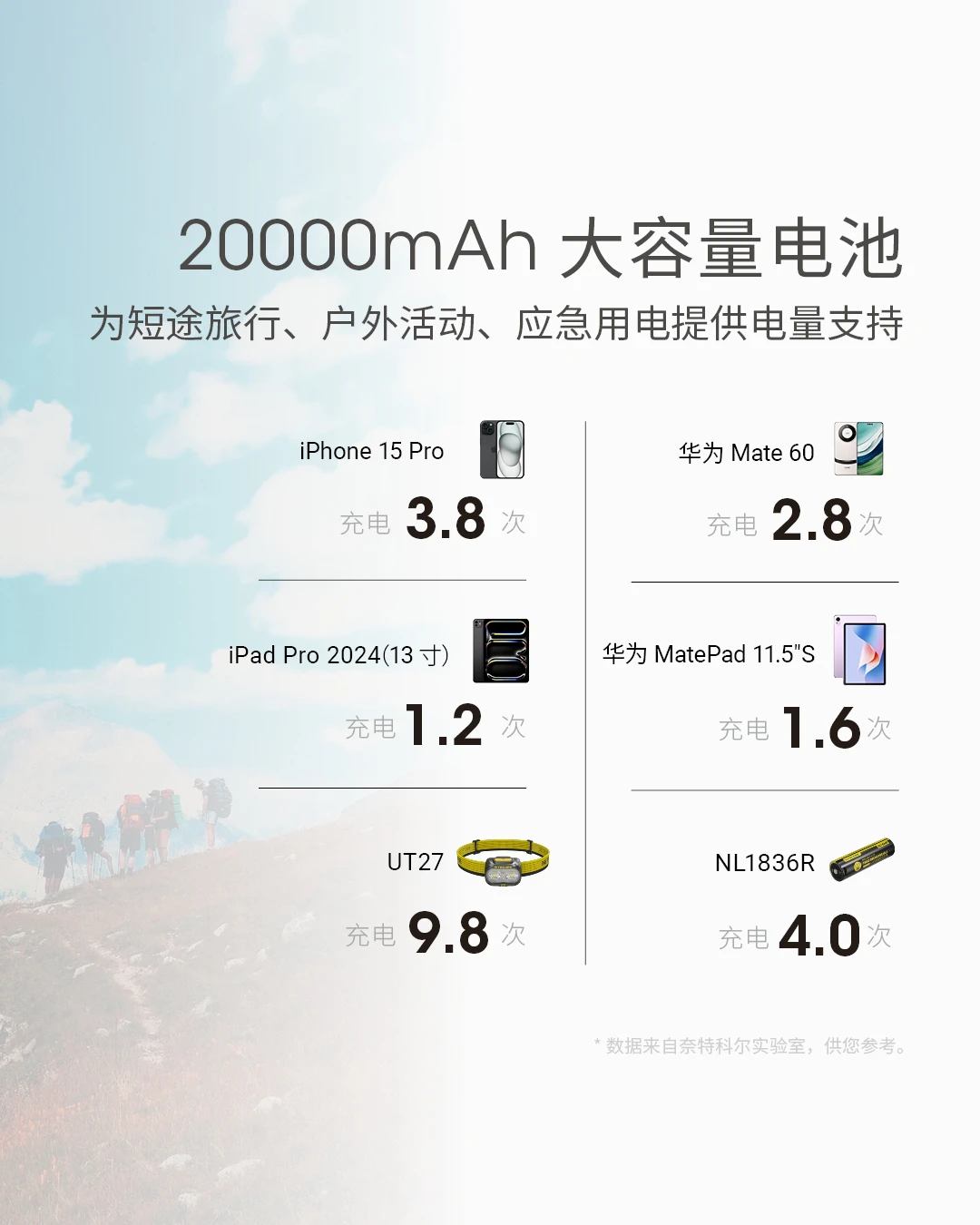 电池能量(额定):20000mAh 3.6V(72Wh)